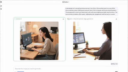 - 비교 생성 → 두 장의 이미지가 생성되면 마음에 드는 걸 선택
