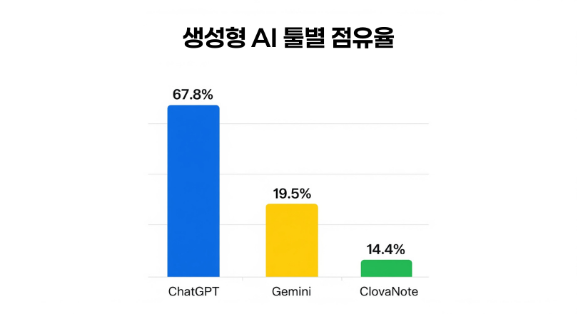 - 챗GPT(67.8%)가 압도적으로 높았고,