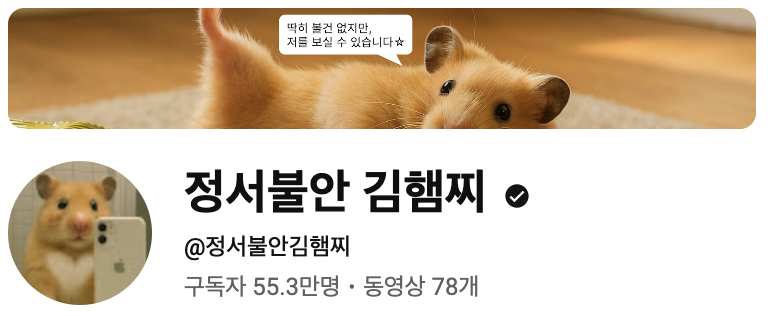 바로 유튜브 ‘정서불안 김햄찌’예요 🐹