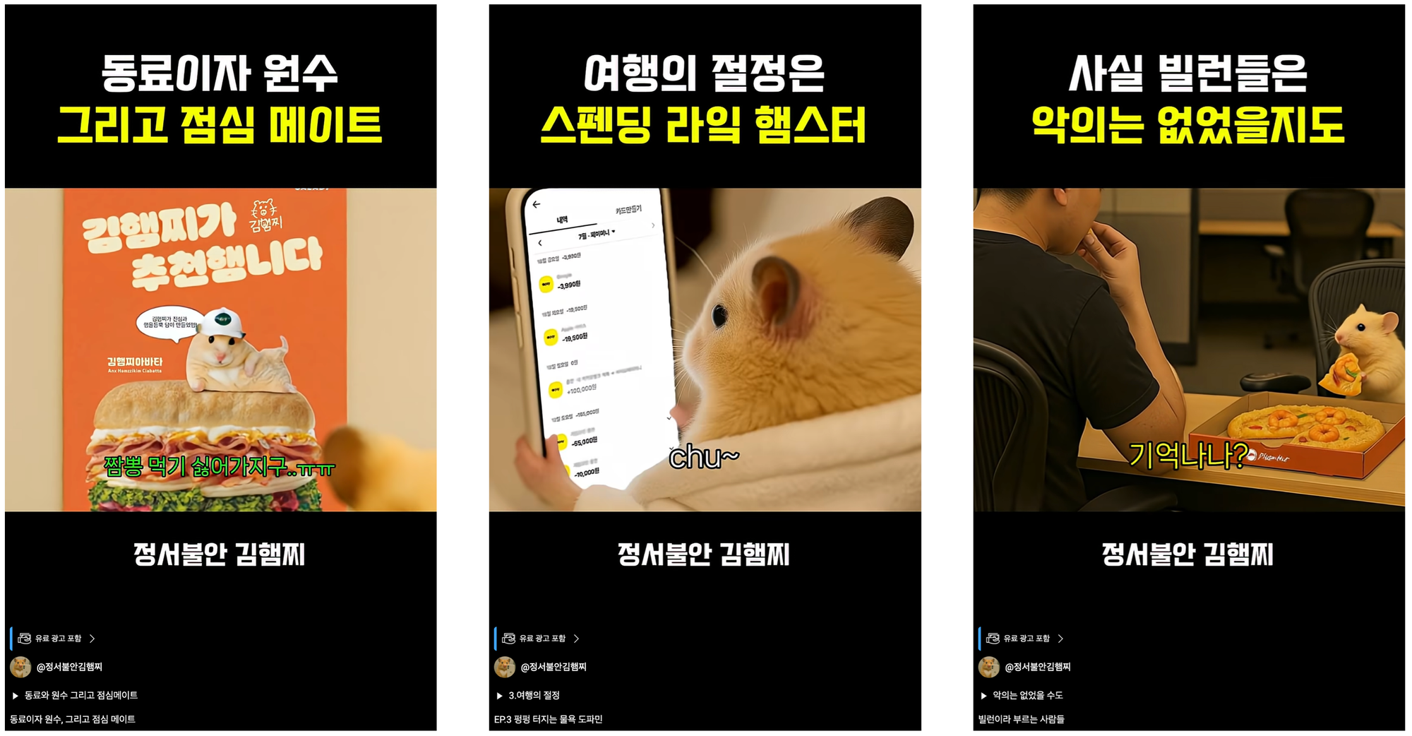 #정서불안김햄찌 #김햄찌영상 #AI콘텐츠사례 #AI기획력 #AI활용사례 #AI브랜딩 #CREAGENLAB #크리젠랩 #브이캣 #AI대행서비스 #AI영상대행 #브랜드영상 #나노바나나 #NanoBanana #생성형AI #이미지생성AI #AI광고 #AI영상제작 #AI콘텐츠 #AI광고대행