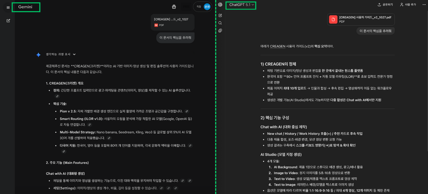 실제로 두 모델을 비교해 봐도 확실히 문서를 읽어내고, 정리하는 부분은 Gemini의 성능이 좋아 보이네요.