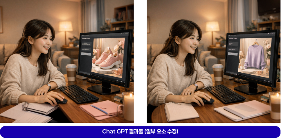 제품이나 구도는 유지한 채 배경, 질감, 톤만 조정하거나 “조금 더 깔끔하게”, “조금 더 고급스럽게” 같은 맥락 기반 요청이 이전보다 훨씬 잘 반영됩니다.