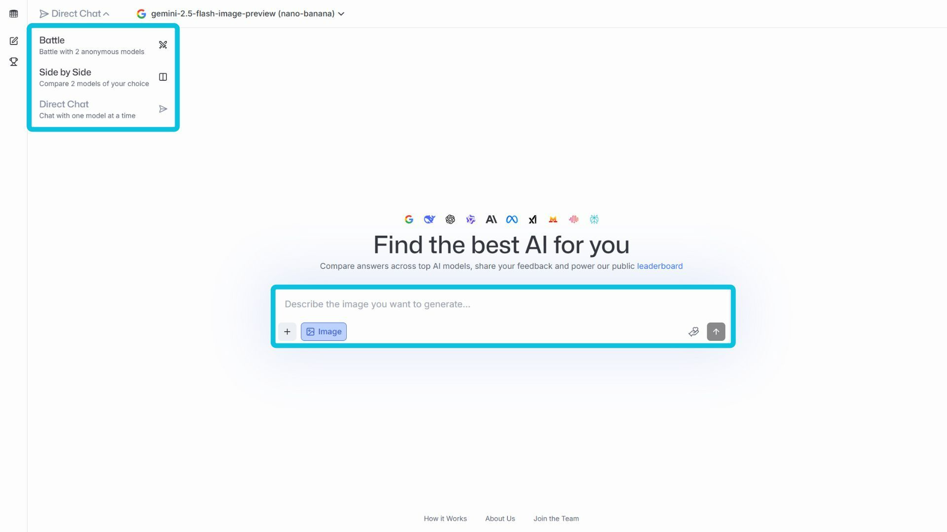 Battleの場合はひたすらナノバナナが出てくるまで生成生成… また、Side by Sideではアップロード画像の一部画像生成はできず「新規生成のみ」なので要注意⚠