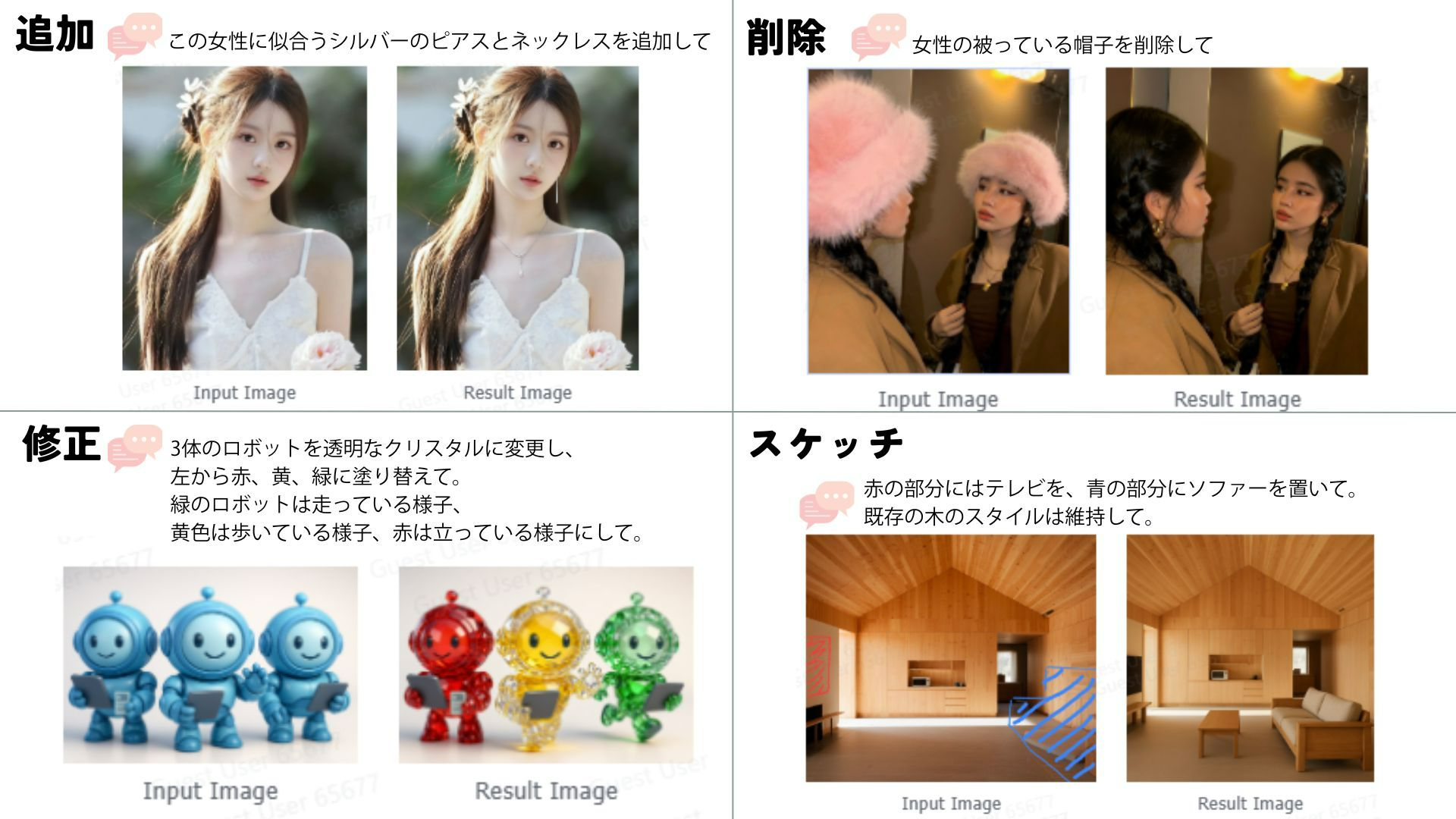 - Seedream 4.0背景差し替え、色調調整、オブジェクト追加といった編集の自由度が強み。複数画像を投入しても高速に結果を生成し、2K解像度なら約2秒で出力可能。