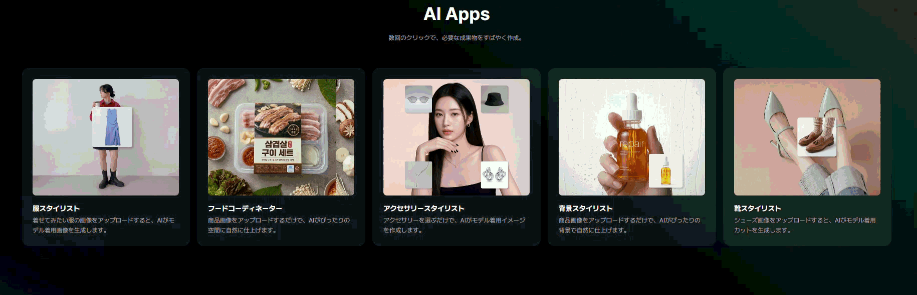 これからはCREAGENの「AIアプリ」で、数回クリックするだけで専門家レベルのグラビアを完成させ、本来の業務や販売だけに集中しませんか?