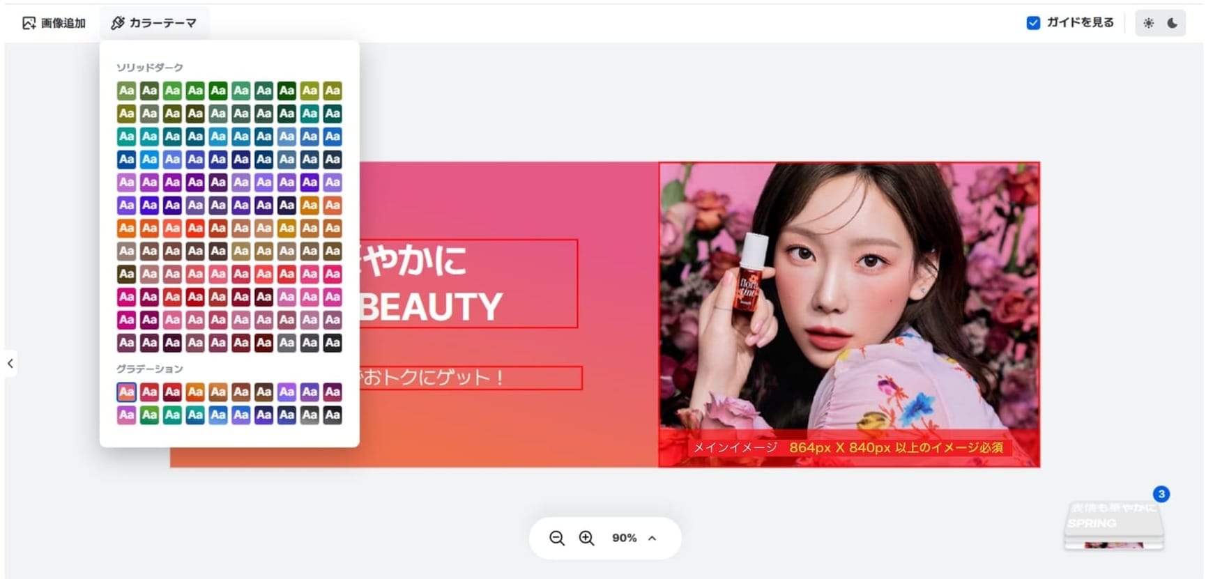 - カラーテーマ (Color Theme): ファッション、ビューティー、食品など、カテゴリー別の専用カラーのみ使用できるよう制限し、トンマナを維持