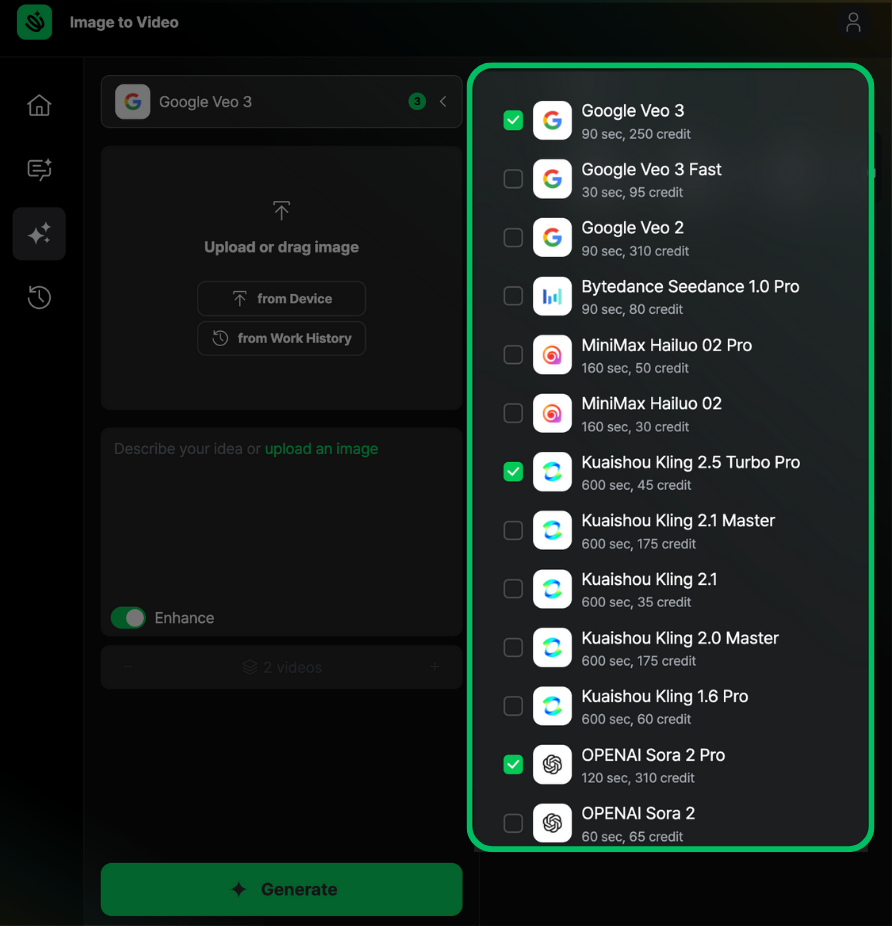 今回のアップデートを通じて、OpenAIのSORA 2 と AlibabaのWAN 2.5モデルをCREAGEN 2.0内で使用可能になりました!