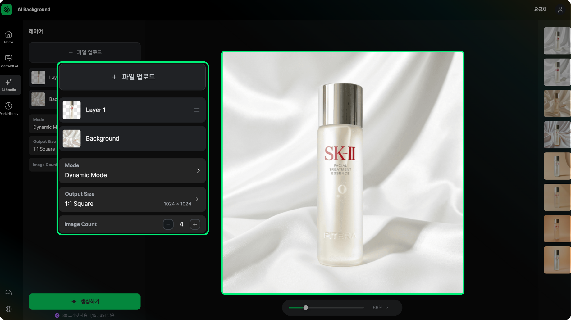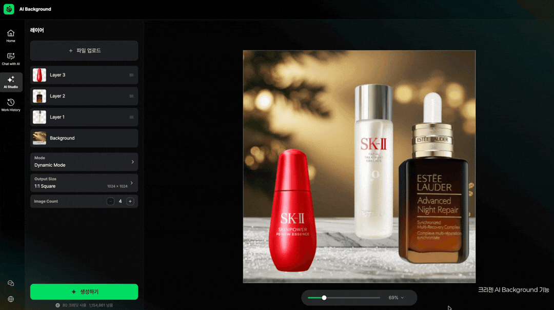 🖼️ 상품 이미지가 있는 경우에는 AI Background 기능을 활용해 스튜디오 촬영을 대체하는 연출컷을 제작할 수 있고