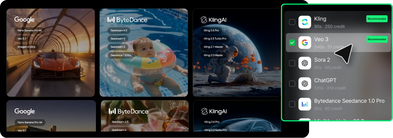 🤖 상품 이미지가 없거나 새롭게 생성이 필요한 경우에도 60개 이상의 글로벌 생성형 AI를 통합한 환경 안에서 이미지와 영상 제작을 이어갈 수 있습니다.
