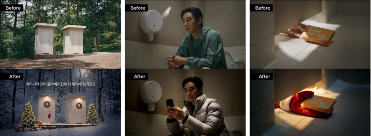 이에 크리젠랩 팀은 원본 영상의 분위기를 해치지 않으면서도 계절감을 자연스럽게 겨울로 전환하는 작업을 진행했습니다.